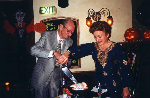 Charles and Alex cutting his 70th. Birthday cake.