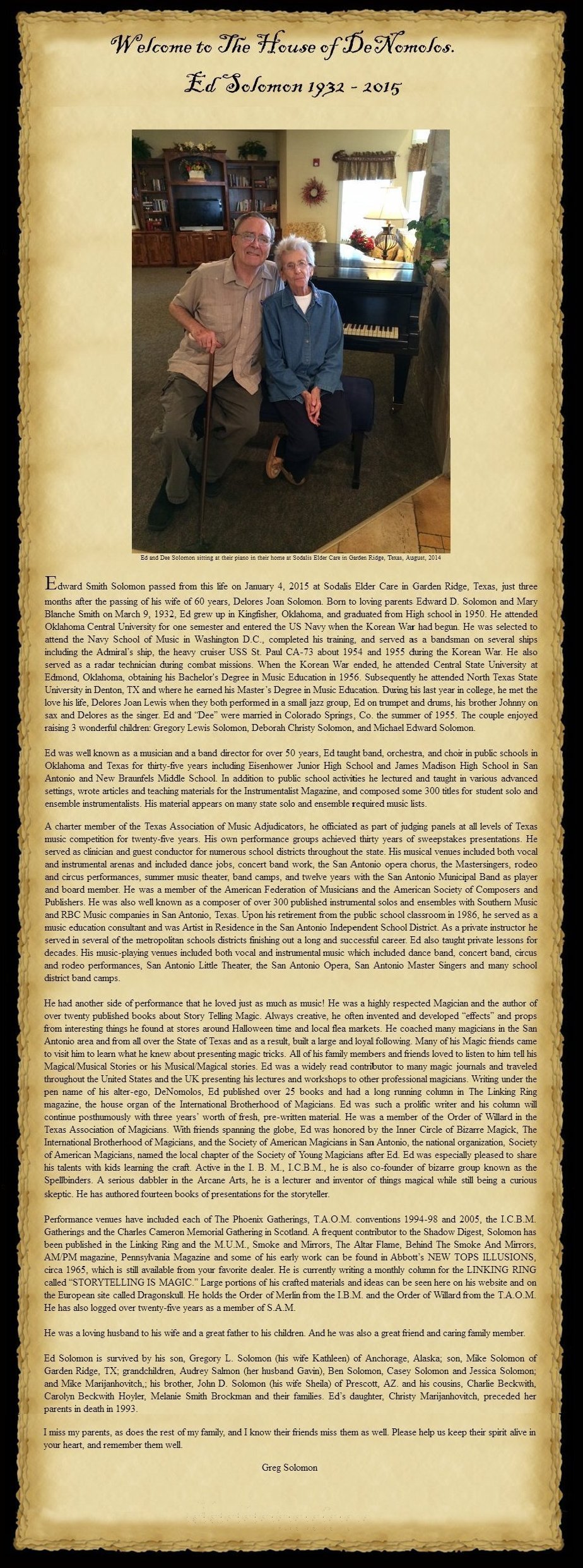 As of 2017, Ed Solomon's website is still online at www.denomolos.com