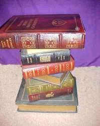 Book 10. This appears to be a stack of very large books when in reality it is a small utility table which I use for doing close up work. The gold lettering and  craftsmanship is traditional work found in import shops. The picture of the open book shows that the top book in this stack opens from the spine side and is a rather deep drawer for props or even as a servant with the proper padding installed.