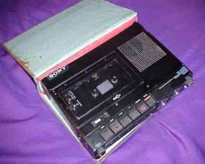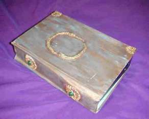 Book 12. This is another style of covering for a tape recorder. This cover was made from an old heavy book from which the pages were removed, the cover treated with epoxy  detail and the tape recorder installed. It too is a table top book with great magical implications. This view shows the tape recorder. Ideal for that special music background that some stories need.
