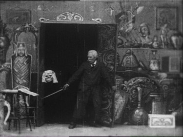 Paul began work on improving the camera and he also developed a projector, the Theatrograph, giving the first public demonstration on 20th February 1896 at Finsbury Technical College. The demonstration proved successful and he was soon hired by enterprising businessmen to hold regular showings at venues around London - including the Egyptian Hall (the principle hall within being used by Maskelyn & Cook for their illusion and magic shows) from 19 March 1896. It was during this time that he met Walter R. Booth. Sales of the R. W. Paul cameras and projectors soared, his mark 2 improved model of the Theatrograph sold for 80 pounds and this machine formed the prototype for the modern film projector. Paul was kept incredibly busy spending evenings traveling from music hall to music hall rewinding the films during each journey before showing them at the next venue. Between March 1886 and March 1897, Paul managed to make a profit of over 12,000 pounds from an initial investment of 1000 pounds. In 1898 Paul began construction on the first film studios in Britain at Muswell Hill, North London and during that summer produced over eighty short dramatic films. [Note: In 1890, 1000.00 pounds would have the same spending worth of today's 59,890.00 pounds and 12,000 pounds would be 718,680.00 pounds] In 1910 Paul shut down his production company and destroyed all his film negatives and left the film industry forever. Some of his short films have survived and are held at The British Film Institute, who occasionally place them on YouTube. Walter R. Booth, born in Worcester on 12 July 1869, was a porcelain painter and an amateur magician, who joined the magic company at the Egyptian Hall in London in the 1890s. Booth became a producer of trick films for Robert Paul in 1899. In 1906, Booth moved to the Charles Urban Trading Company. He established his own studio in his garden at Isleworth, London, with Harold Bastick as his cameraman. Notable among the films produced there were the first British animated film, The Hand of the Artist (1906), The Sorcerer's Scissors (1907) and When the Devil Drives (1907). His invasion fantasies, such as The Airship Destroyer (1909) and The Aerial Submarine (1910), are entertaining prototype science fiction fables in the Jules Verne mould. Most notable though might be Scrooge (1901) which was the first film made of a Charles Dickens story. [put Scrooge 1901 into YouTube to see what remains of the film] Film Synopsis This film WAS made and released in 1901 (released 1902 in the States) and NOT 1907 as some website resources state (a typo mistake on one site stating that the film was made in 1907 has led to many wrongly accepting this as the correct date. You should ignore the date given on the following film clip). The Haunted Curiosity Shop is a showcase of the elaborate