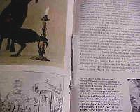 Measuring the spine of the device, a slot was cut into the center of the open spine on the book that I selected to become the prop. The slot was opened enough for the spine of the device to be inserted when the open wings of the mechanism were placed through slits in several pages. The wings were glued down with rubber cement and the spine covered with paper tape to hide the mechanism. Several pages were glued together above and below the two wings and the book was placed under a heavy object to allow the glue to dry.