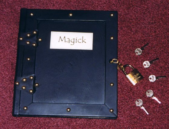 All books now come with brown leather hinges unless otherwise requested. The title not clearly shown in the photo is supplied as optional and is the word 'Magick' printed on parchment, personally, the book looks more mysterious without it. The book size  H12" X W10 3/4" X  1 1/4"Thick.