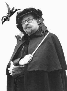 At the age of 13, Steve became fascinated with escapology, and was performing professionally as an escape artist by the age of 19. His feature was an escape from an Iron Maiden lined with 125 spikes. After a year of performing escapes for night clubs and county fairs he returned to higher education to net his Bachelor of Science in Communication-Education. By profession a technical writer, Steve continued to perform semi-professionally as an escape artist, magician and mentalist. During the 1980s and 90s, Steve wrote several articles on escapology for the journals, "Escapism" and "The Escapist Newsletter." He was featured on the cover of an issue of "Escapism," and in Rudy Steffish's book, "Conversations with Harry, Don't Forget to Dance." In the late 1980s, Steve joined the Society for Creative Anachronism (SCA), earning an Award of Arms (and the title of Lord) for his performances of ‘salamandry’ (fire-resistance), and for his research in period alchemy and natural philosophy. Steve briefly served as the Minister of Science for his local shire (Marche of the Unicorn). In 1999 he married his lady, Andrea. The wedding dress was a Victorian gown in black and burgundy, with shawling of black, spider-web lace. Steve has also performed for Harry Potter book-release parties as a ‘wizard’ after the style of J.K. Rowling’s Hogwarts professors, even carrying a birch wand crafted special for him by Alivan Wandmakers. For these shows, he was billed as “Dr. Stephen Midnight.”