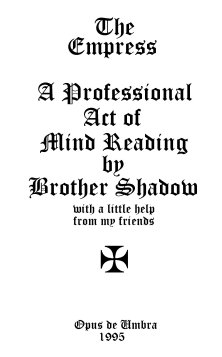 The Empress by Brother Shadow is a professional act of Mind Reading, fully described in this book.hadowbook5